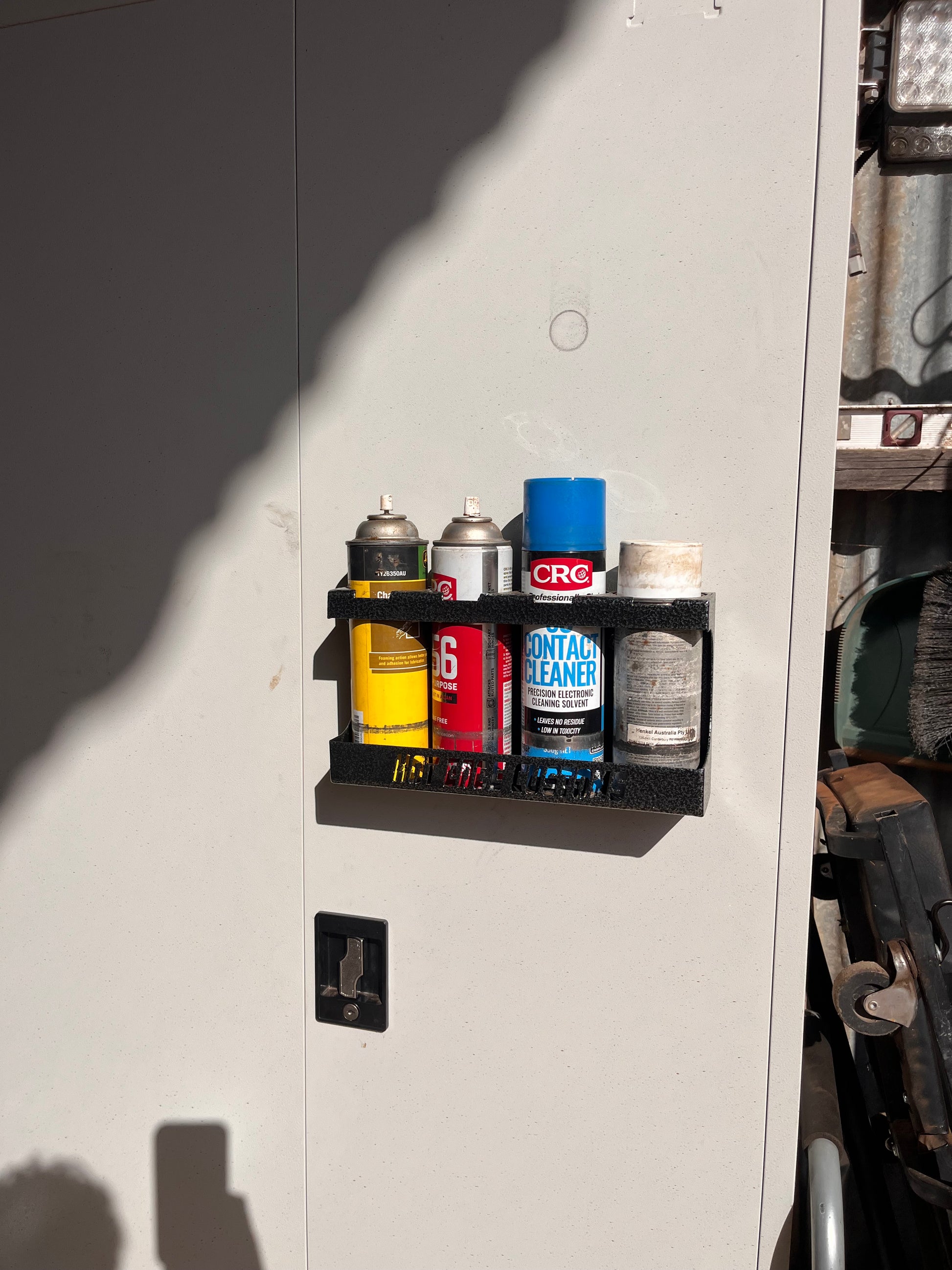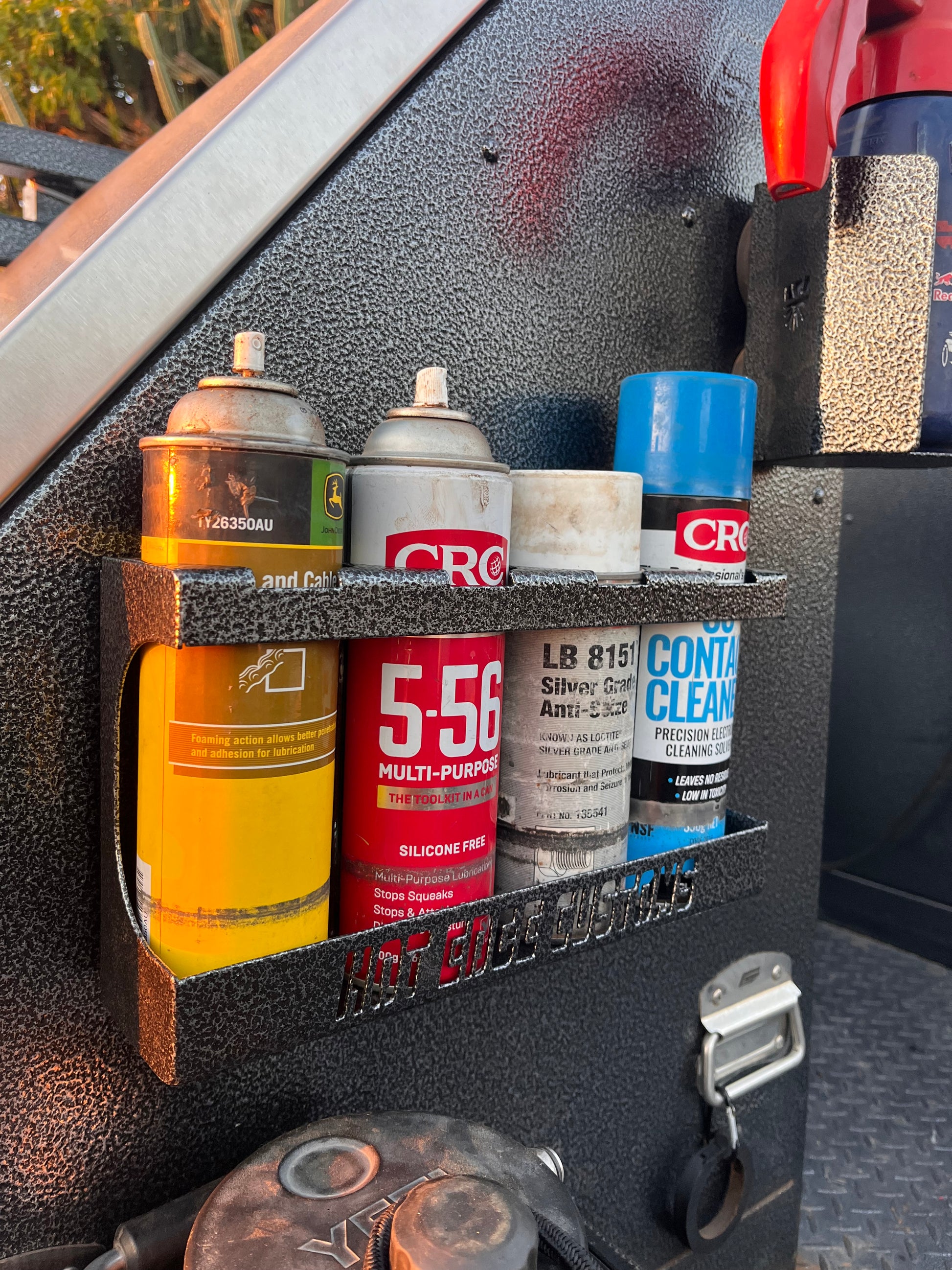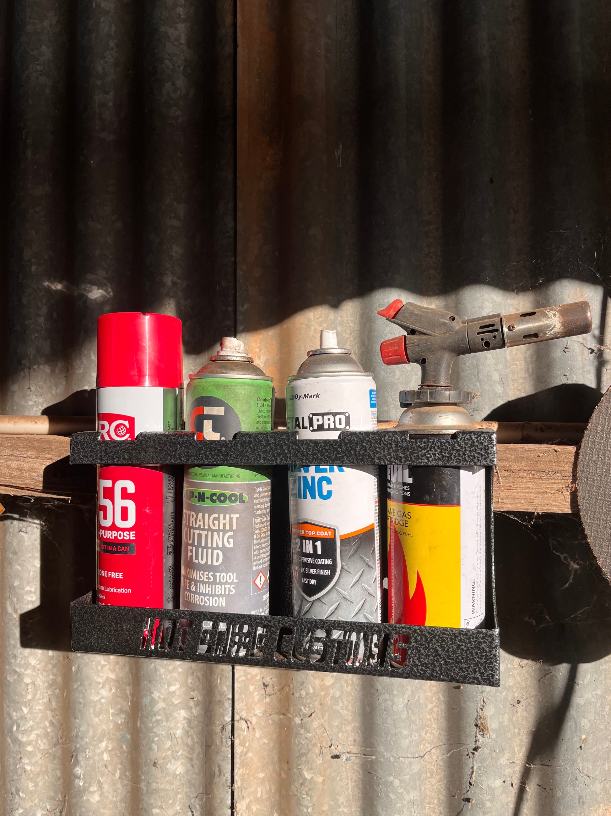 Fully fabricated and powdercoated aerosol can holders made for easy access in the shed or in the paddock. They have 8.5mm cnc cut holes for mounting with screws, bolts or magnets. Custom text is available so send us a message first and we’ll make sure we can fit your idea on yours.